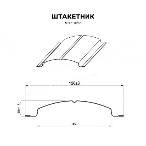 - Код товара: Штакетник металлический МП ELLIPSE-T 19х126 0,45мм о-образный